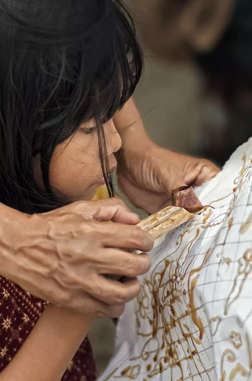 學(xué)習(xí)蠟染印花法的小姑娘