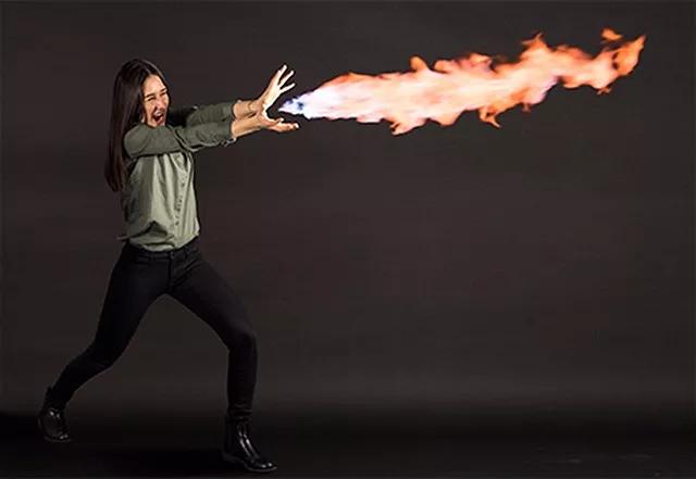 你需要準備一罐噴霧式除臭劑。對著火焰輕輕噴一下,就能創(chuàng)造出小型、可控的噴射火焰。拍下它。