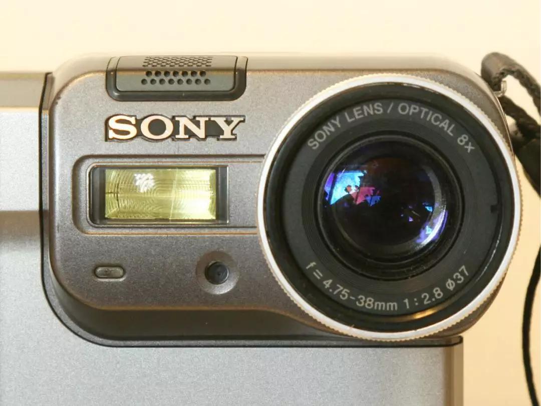 前者采用定焦鏡頭,后者采用 10 倍變焦鏡頭。這兩款相機(jī)將鏡頭組件設(shè)計(jì)在相機(jī)的左上角,但不影響左手持握,這一風(fēng)格一直沿用到我們今天要將的 MVC-FD88 上。