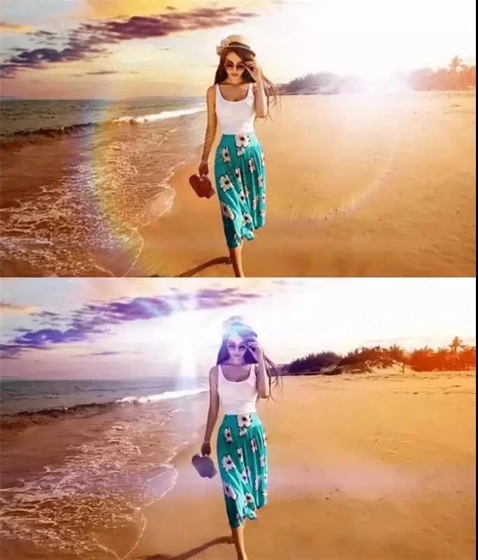 比如說(shuō),攝影師直接將太陽(yáng)放入畫(huà)面中,那么就會(huì)看到人像頭部的眩光;如果不將太陽(yáng)放入畫(huà)面中,就會(huì)看到周邊暖黃色的光暈;還有就是人像身上會(huì)有類(lèi)似彩虹色的圓形光斑。