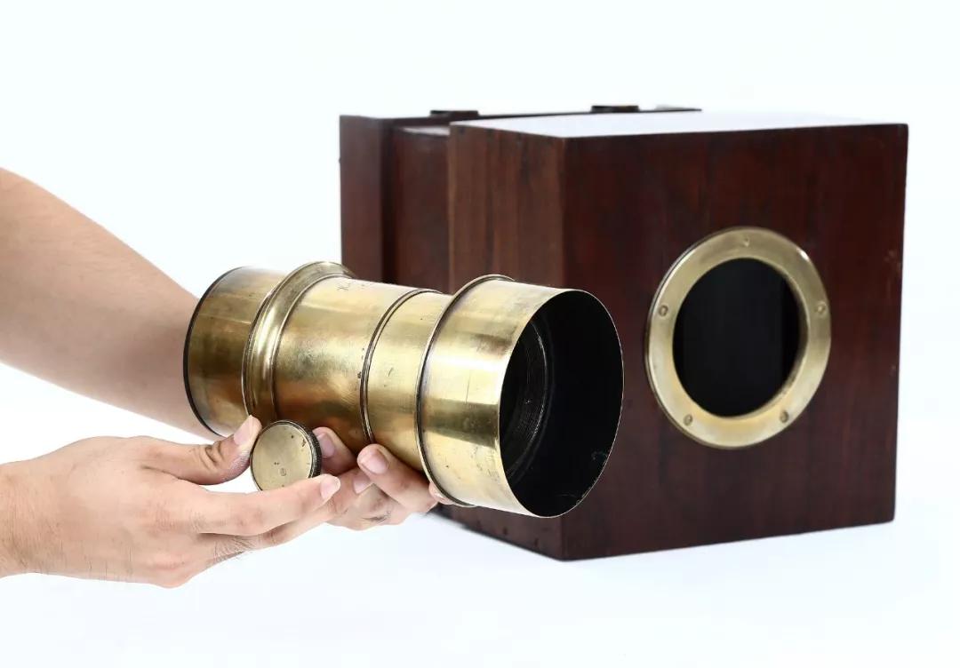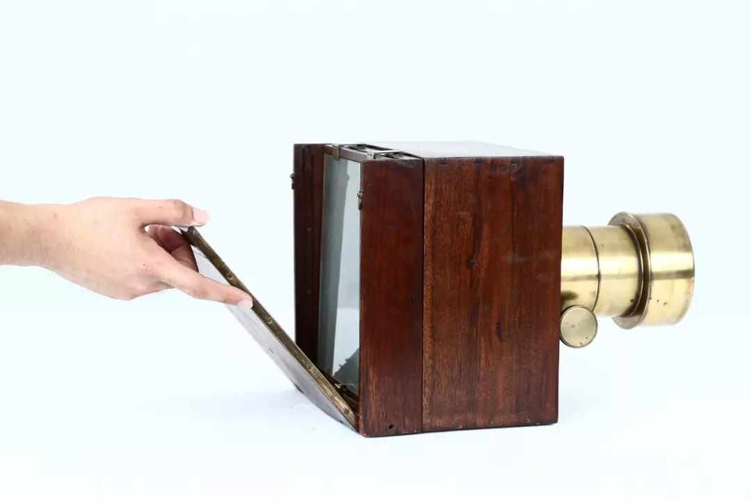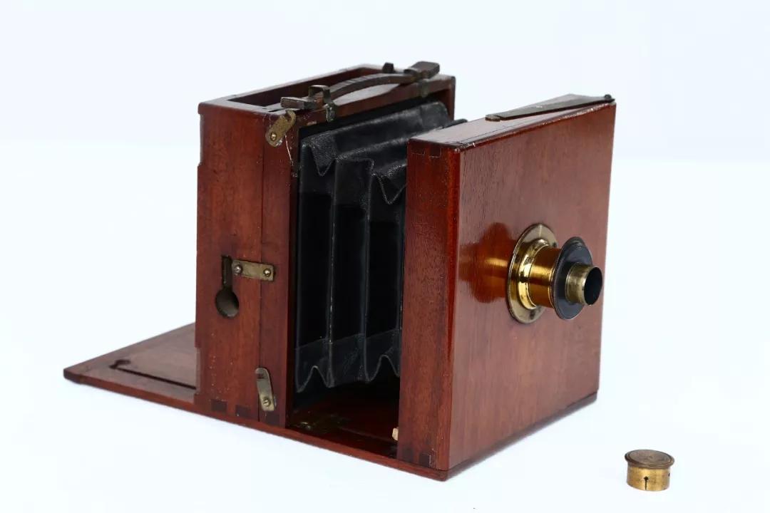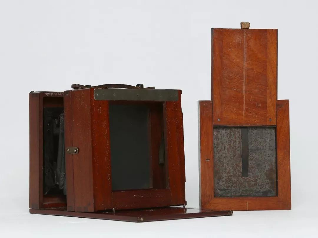如果按機(jī)身材料分類,有木制和金屬制兩種;如果按調(diào)焦方式分類,有固定基座滑箱式、尾板滑箱式和皮腔折疊式多種;如果按照片形式分類,有普通照相機(jī)、立體照相機(jī)(1852 年法國(guó)人阿基利·基內(nèi)首創(chuàng),畫(huà)幅 120×240mm);如果按畫(huà)幅分類,既有6.5×8.5 英寸全版的,也有半版、1/4 版甚至 1 英寸畫(huà)幅的。
