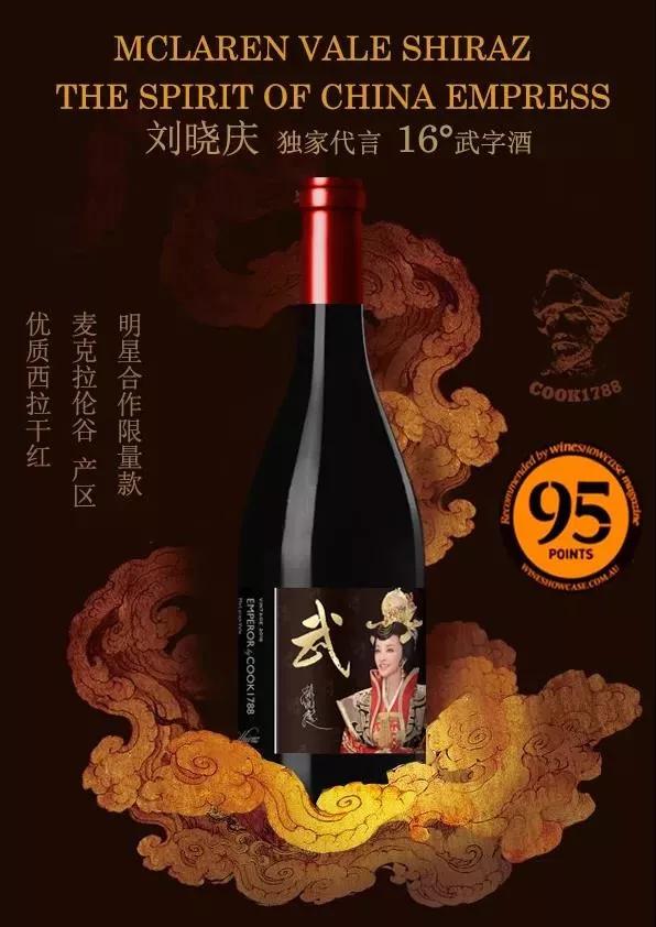眼下活躍在話劇舞臺的老牌影星劉曉慶,今年也成為了一款澳大利亞葡萄酒的代言人,酒標(biāo)上金燦燦的“武”字和劉曉慶最經(jīng)典的武則天造型,很有一種把麥克拉倫谷變成陜西長安的氣勢。