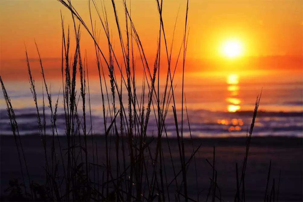 在海邊除了借助巖石作為前景拍攝慢門(mén),也可以嘗試找一些形狀一致的草作為前景拍攝一些唯美的畫(huà)面。