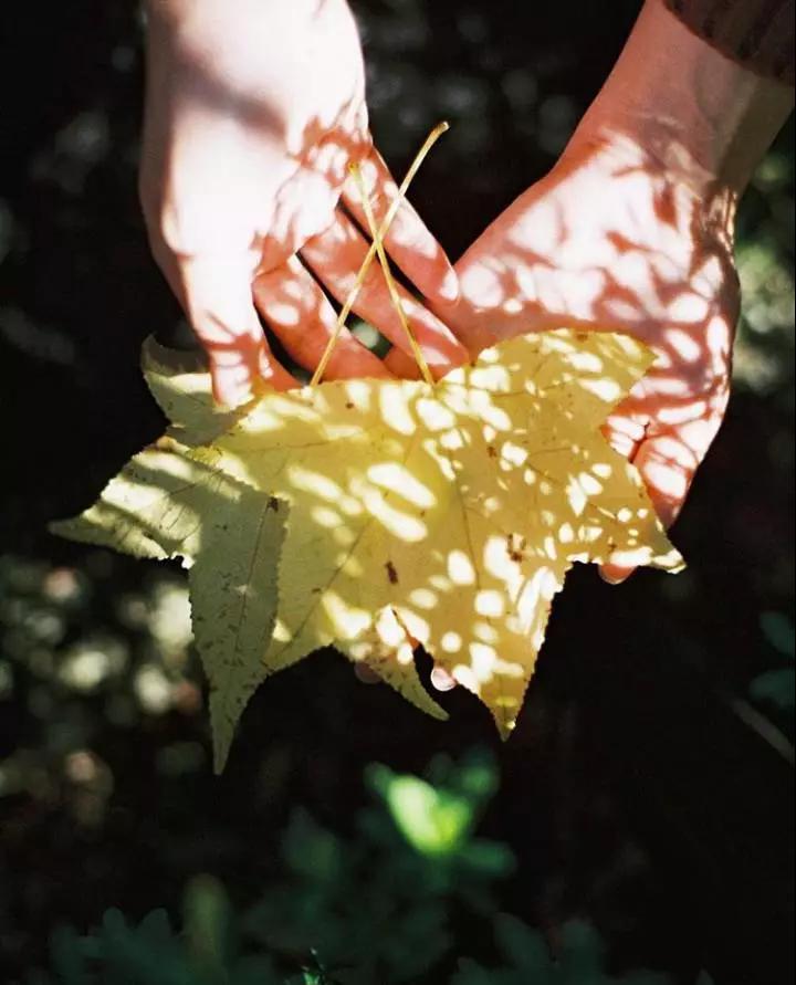 光線在樹(shù)蔭下形成漂亮的光斑,用其來(lái)當(dāng)作前景就能拍攝到創(chuàng)意的畫(huà)面,或者手捧一片落葉,也能美滋滋。