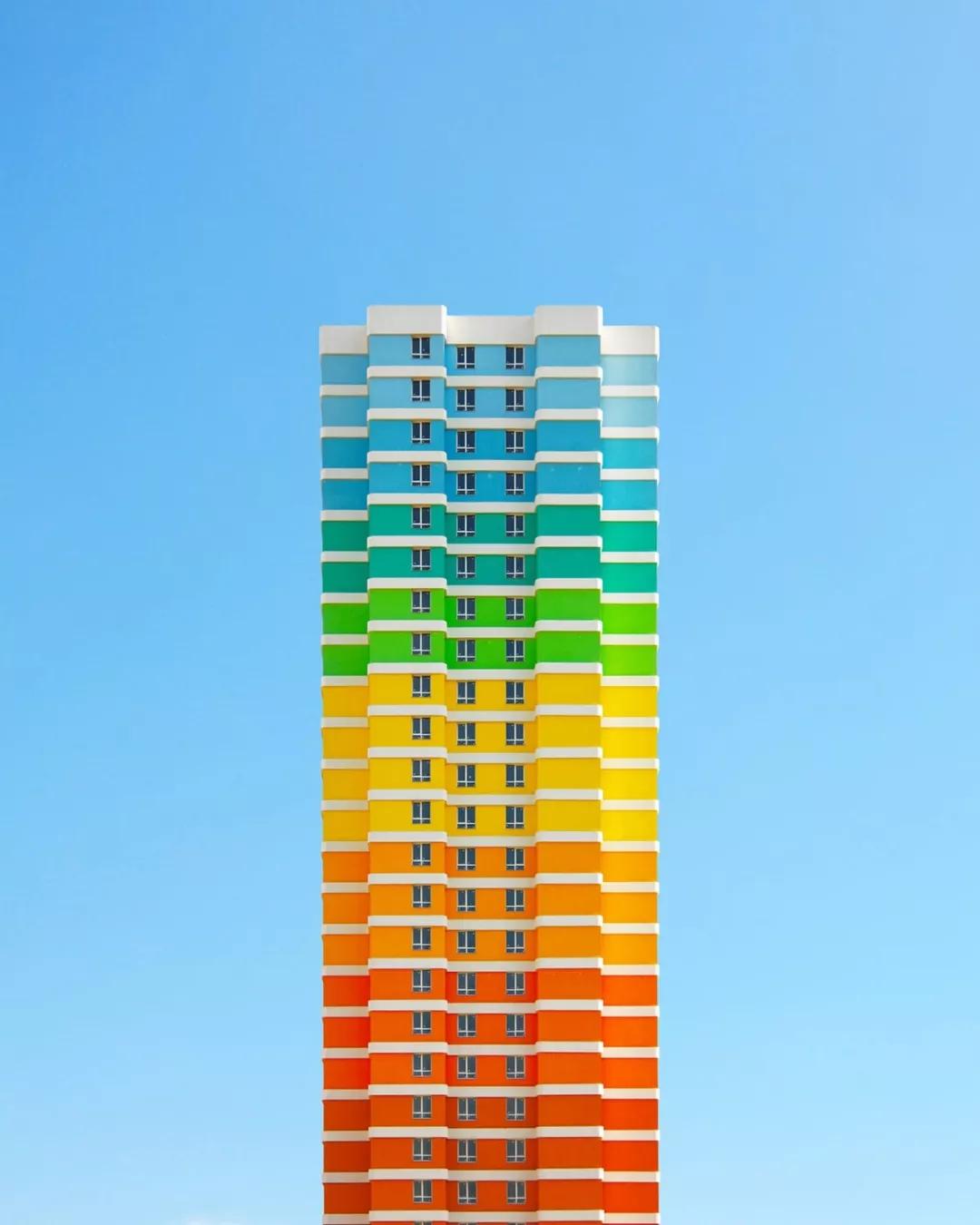 托倫把他對(duì)建筑設(shè)計(jì)和攝影的喜愛完美的結(jié)合在了一起,他所拍攝的彩虹建筑就像是從電影中截取出來(lái)的圖片。