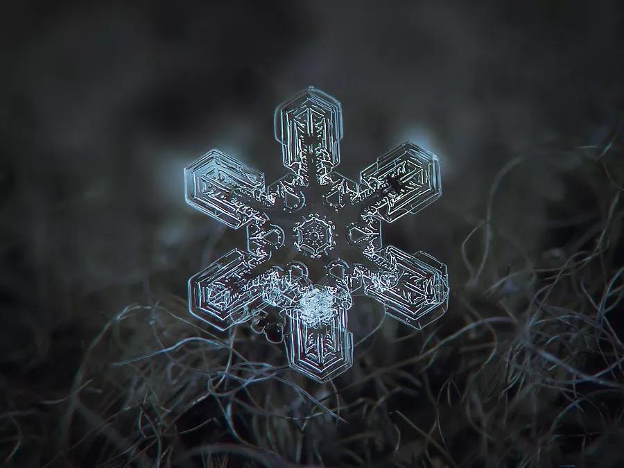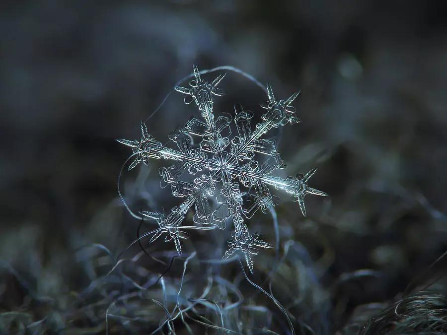 在他的微距鏡頭下,紛紛揚(yáng)揚(yáng)的一場(chǎng)場(chǎng)雪被“拆碎”,形態(tài)各異的冰晶呈現(xiàn)出各式形狀規(guī)整、樣式精美的圖案,在讓人沉迷于雪花無(wú)限美麗與夢(mèng)幻的同時(shí),亦讓人不禁贊嘆大自然的神奇。