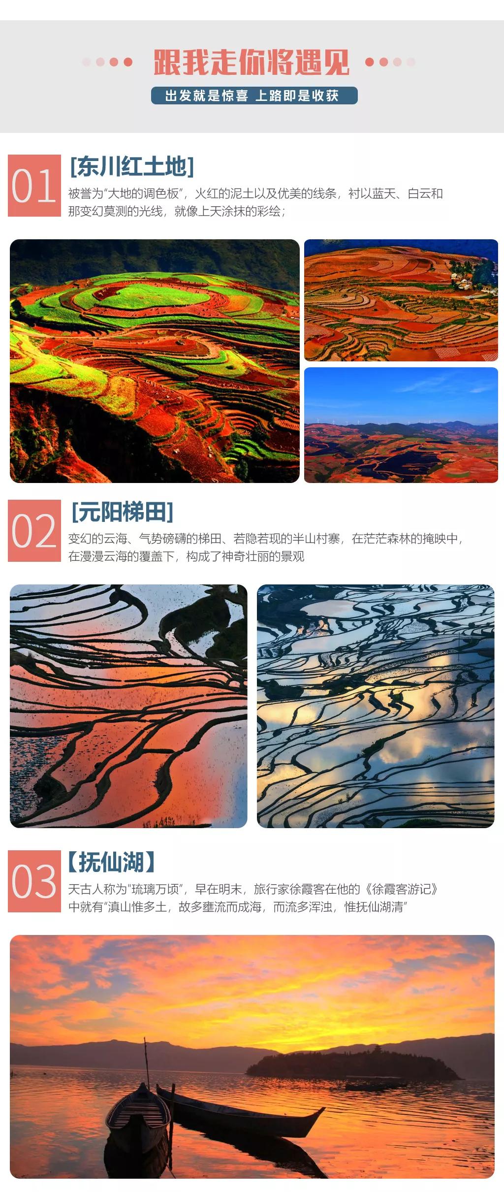 當日行程:早晨出發(fā)前往【紅土地打馬坎】觀賞磅礴日出,之后到達【七彩坡】、【紅土大觀錦繡園】進行拍攝;