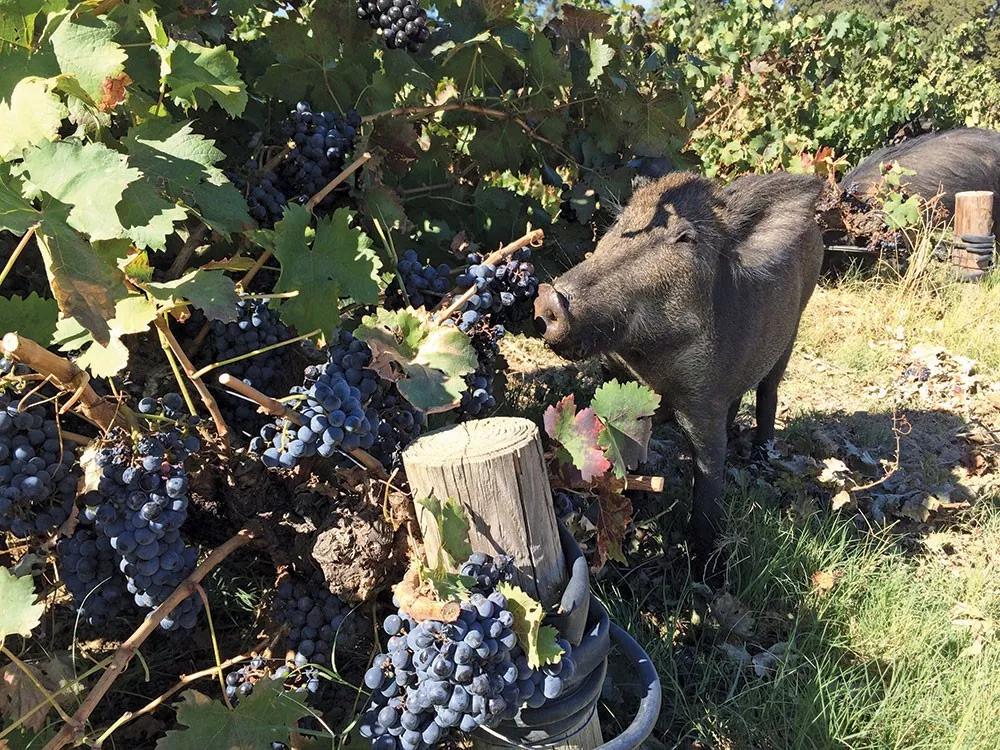 意大利的酒鄉(xiāng)托斯卡納深受野豬的困擾。當(dāng)?shù)氐囊柏i群日常以糟蹋葡萄園為樂,它們大批沖入園中踐踏葡萄藤、扯拽果實(shí),管你是什么DOC、DOCG,老藤嫩葉通通因?yàn)樗鼈兞鑱y成泥碾作塵。