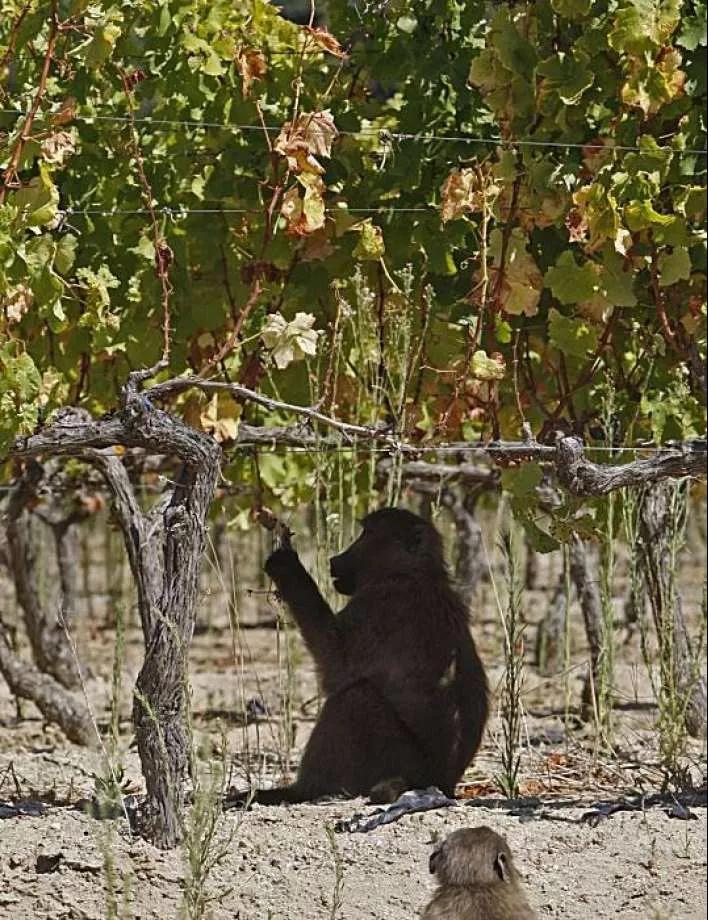和托斯卡納暴殄天物的野豬相比,南非開普敦的狒狒顯然有著更挑剔的品味。隨著葡萄酒業(yè)的興盛,當(dāng)?shù)蒯翎襞c時(shí)俱進(jìn),發(fā)展出了新潮的昂貴品味——吃葡萄。當(dāng)?shù)厝松踔量偨Y(jié)出了經(jīng)驗(yàn):狒狒最愛吃黑皮諾和霞多麗,它們能辨別出最甜美的果實(shí),只把自己看不上的酸澀葡萄留給釀酒師。
