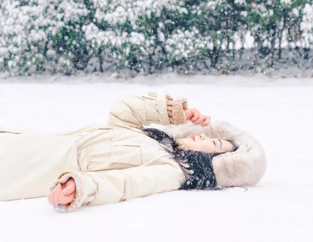 也可以直接躺在雪地里,攝影師鏡頭放低,只將半邊臉納入鏡頭。
