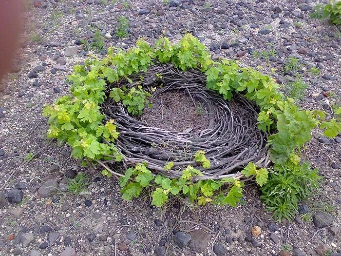 這是一種很怪異的樹形,整個(gè)葡萄樹盤繞成一個(gè)筐形,像是一個(gè)鳥巢一樣……它基本上,長(zhǎng)這樣:
