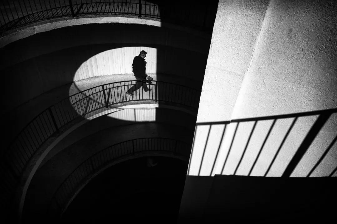 黑白色調(diào)讓環(huán)境題材的形狀、線條和模式更分明地呈現(xiàn)出來(lái)。比如,樓梯的臺(tái)階、玻璃地板、斑馬線等,這些都是我們平日里常見(jiàn)的建筑物。