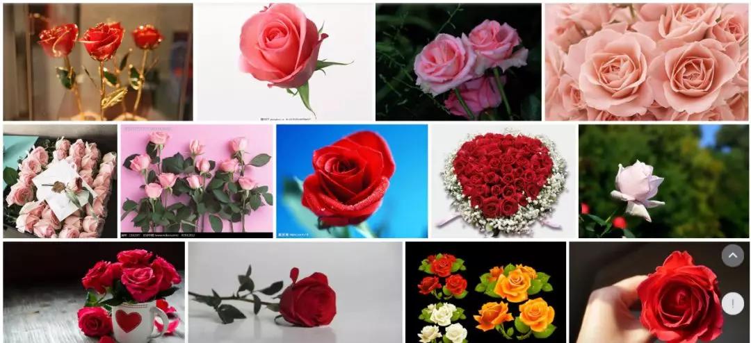 搜索“玫瑰”,得到這樣一大串圖片,它們沒有什么特別、新穎之處。這樣的照片與我們的感知模式一致,因此只是加強(qiáng)了“玫瑰長著樣兒”的固有認(rèn)知,但對圖片本身不會形成記憶。