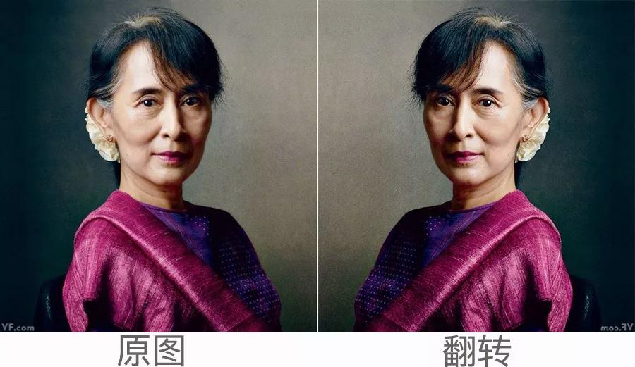 人物面部朝右,視覺情感傾向是積極昂揚(yáng)的,與人物的整體姿態(tài)極為貼合。我們將其翻轉(zhuǎn),會感覺到強(qiáng)烈的不和諧感。