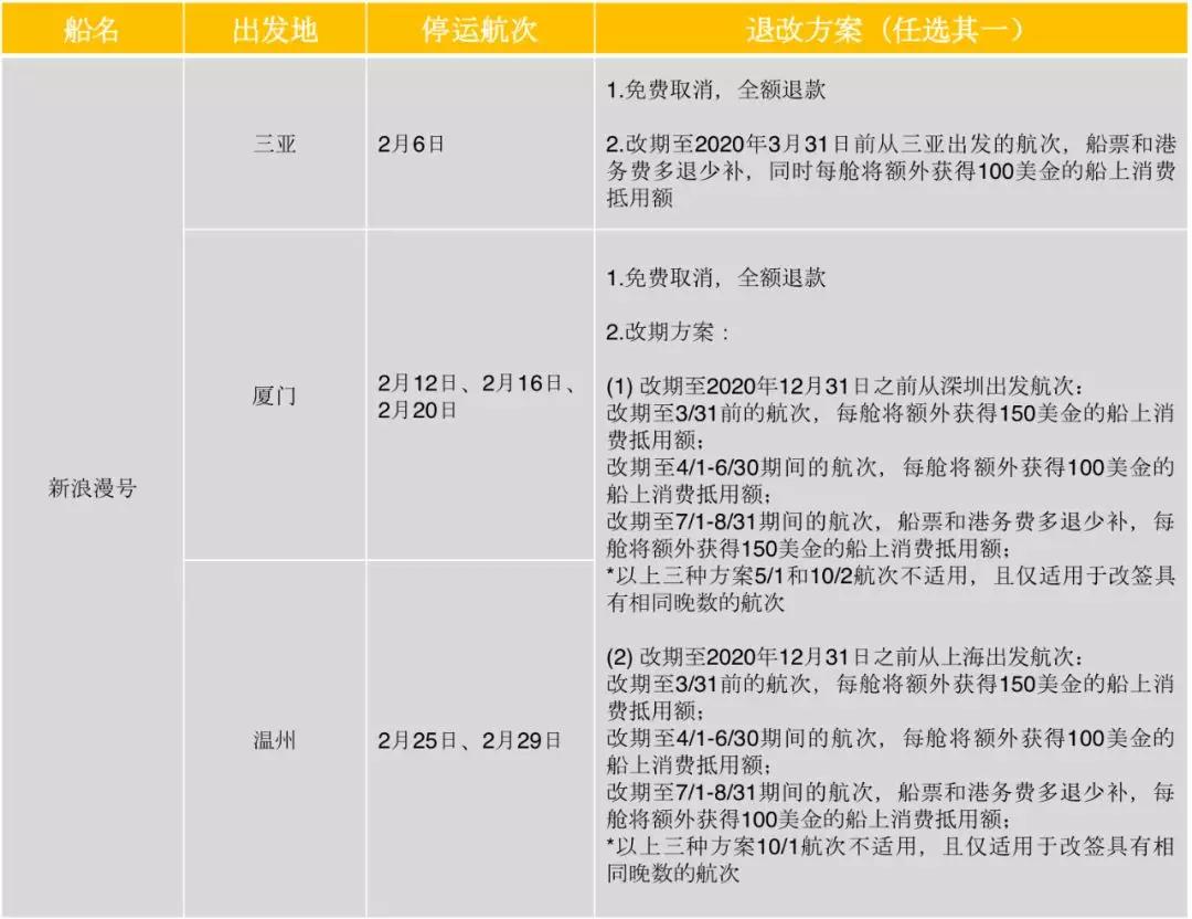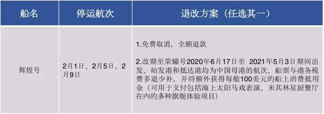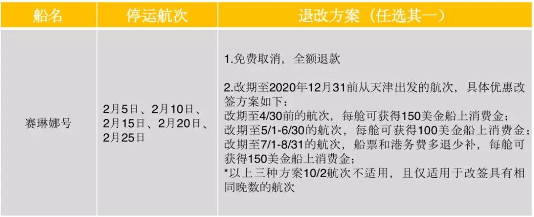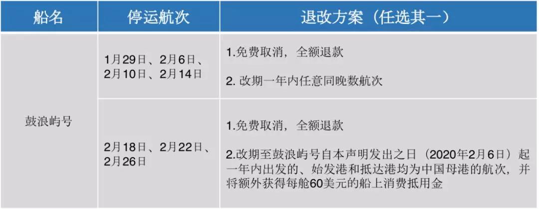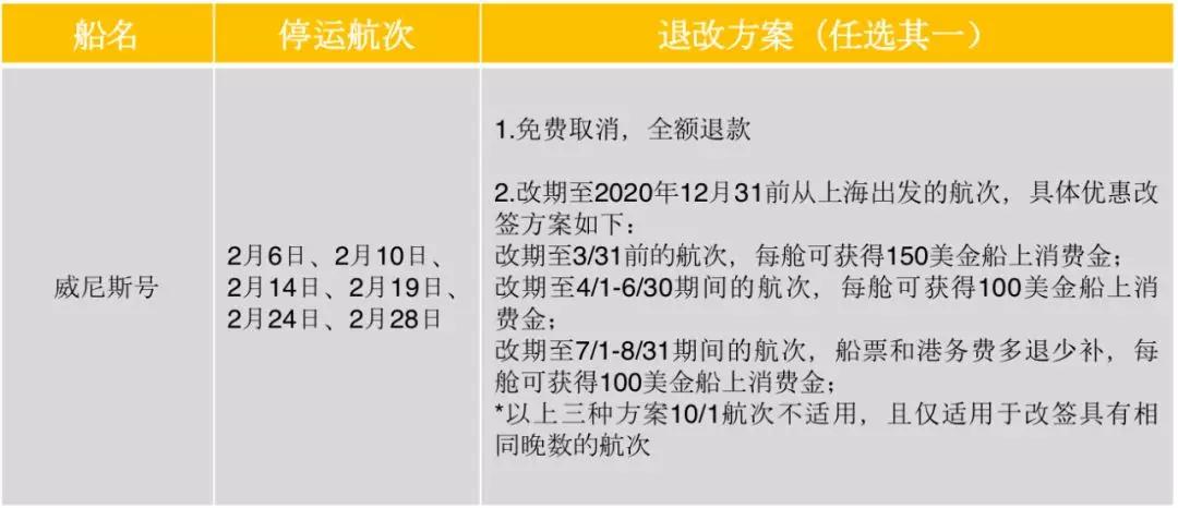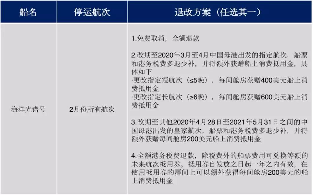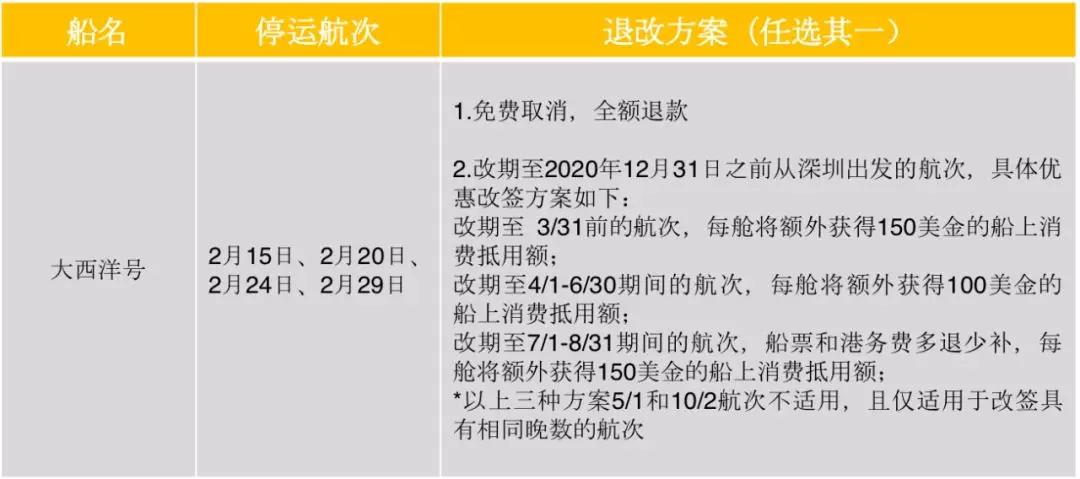 各郵輪公司在停運(yùn)的大形勢(shì)下,給出的退改方案主要為兩類,全額退款和航次改期,改期方案中大部分都給予了船上消費(fèi)金作為對(duì)預(yù)訂乘客的補(bǔ)償,可以感受到一定的誠意。