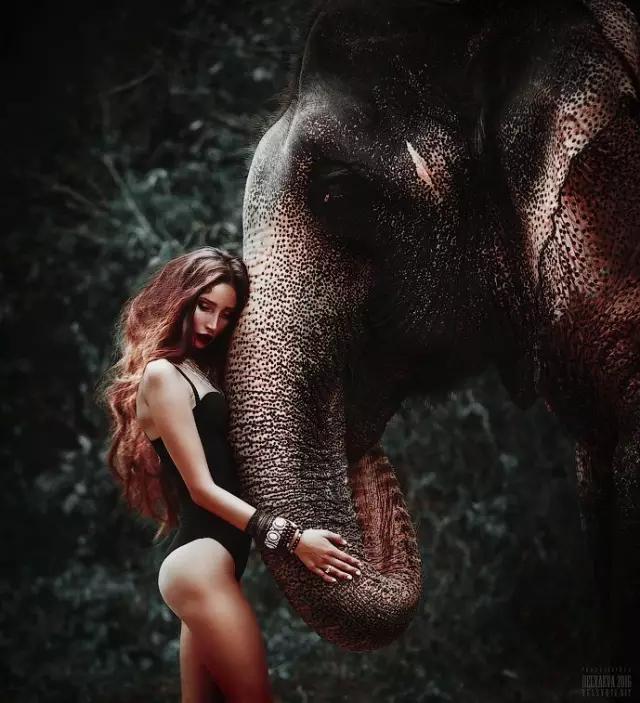 有獨特的配角,當(dāng)然要毫不猶豫地使用。當(dāng)然,必須考慮到攝影表現(xiàn)的方式,觀察下圖,盡管大象是核心視覺元素,但攝影師依然盡力動用構(gòu)圖和色彩上的手段,來保證視覺上的美感,同時保證人物在整個畫面中的中心感