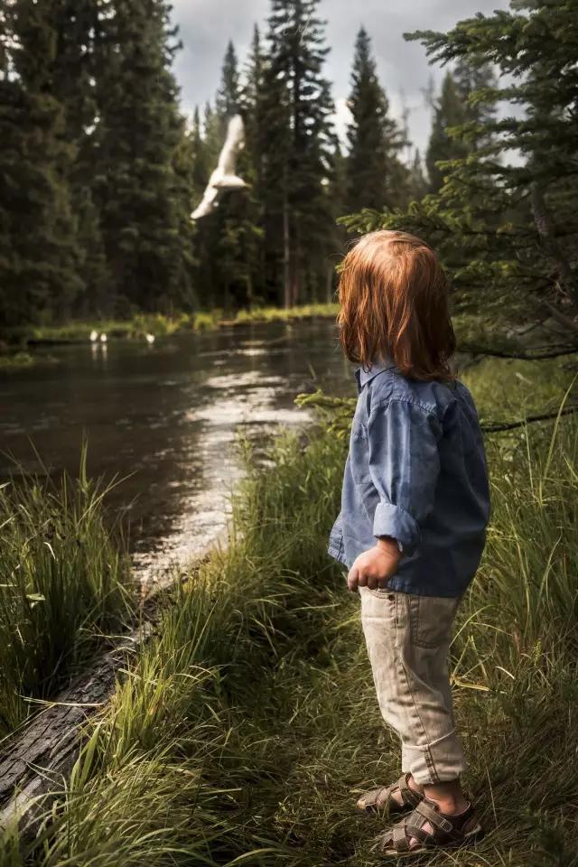 尋找自然景物之美,是攝影師觀察力的體現(xiàn)。這張作品充分觀察到了前景水面和中景水面的不同光效,輔助以構(gòu)圖上的平衡感,獲得極佳的視覺效果。人物讓畫面活躍起來。