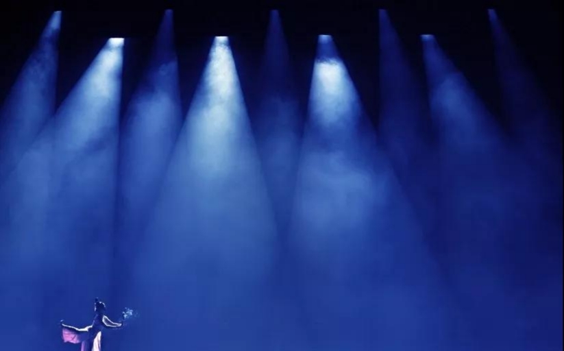 舞臺(tái)的藍(lán)色光打在演員的紅色衣服變成了紫色調(diào)