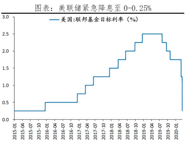 繼3月3日緊急降息0.5個百分點之后,3月15日美聯(lián)儲再次宣布將聯(lián)邦基金目標利率下調(diào)1個百分點至0-0.25%的區(qū)間,并啟動7000億美元的量化寬松計劃。此外,美聯(lián)儲宣布將貼現(xiàn)窗口利率下調(diào)1.5個百分點至0.25%,提供日內(nèi)信貸支持,鼓勵銀行使用資本和流動性緩沖,將法定存款準備金率降至0。
