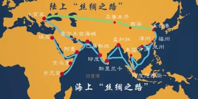 將亞歐非三個(gè)大陸整合起來的一路一帶戰(zhàn)略規(guī)劃圖