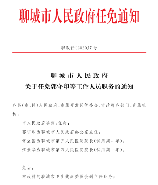 聊城市人民政府任免通知
