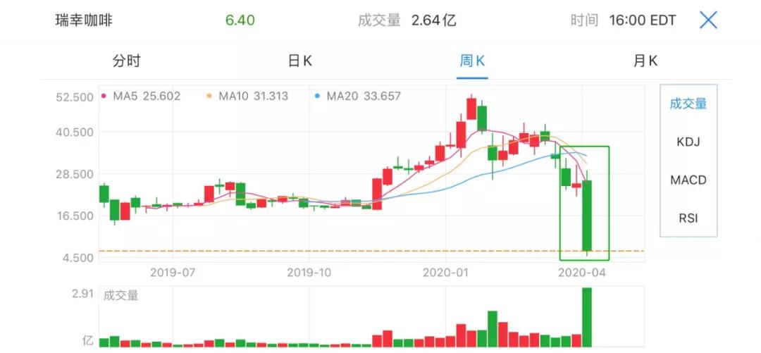 而它的股價從26.2美元到5美元,只用了幾個小時——4月2日,瑞幸自曝