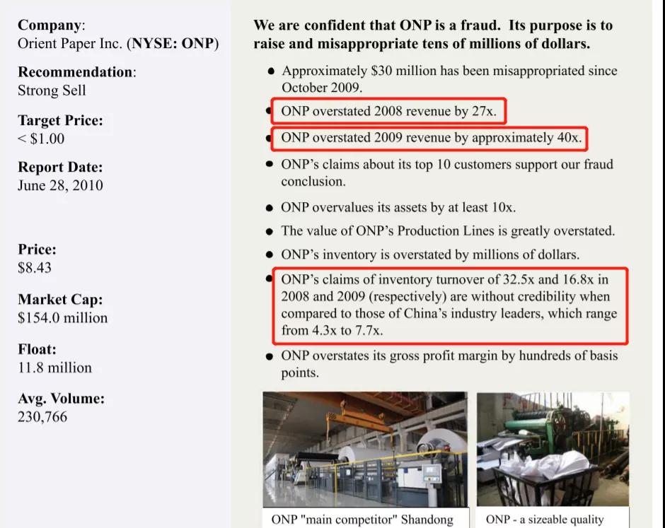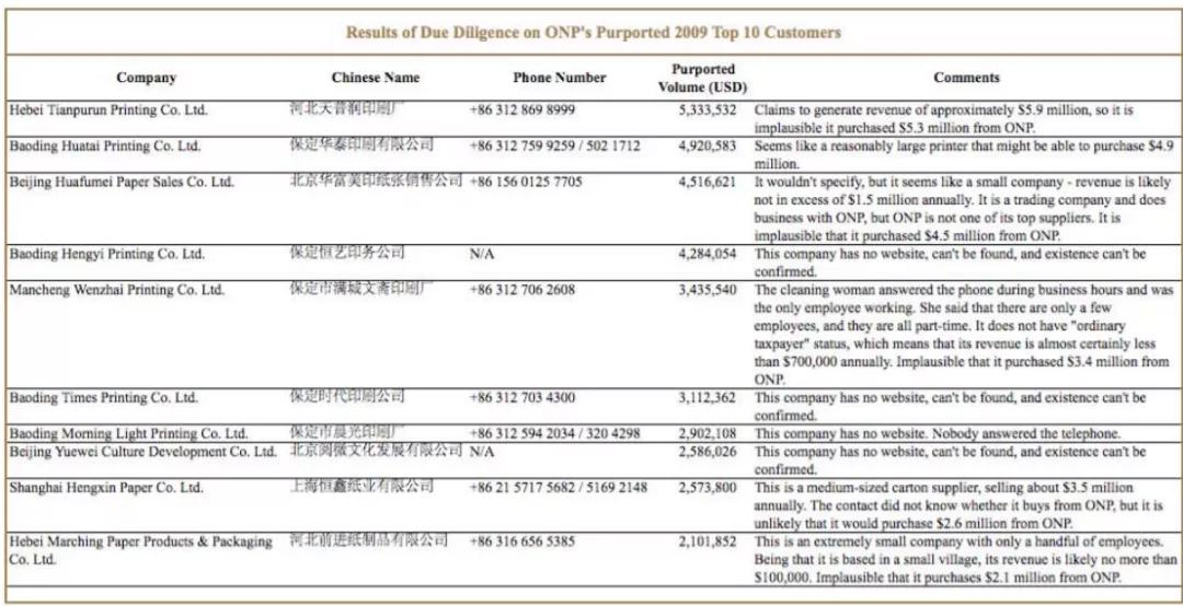 在對東方紙業(yè)進(jìn)行全方位的調(diào)查之后,2010年6月,布洛克團(tuán)隊發(fā)布了一份長達(dá)30頁的報告。