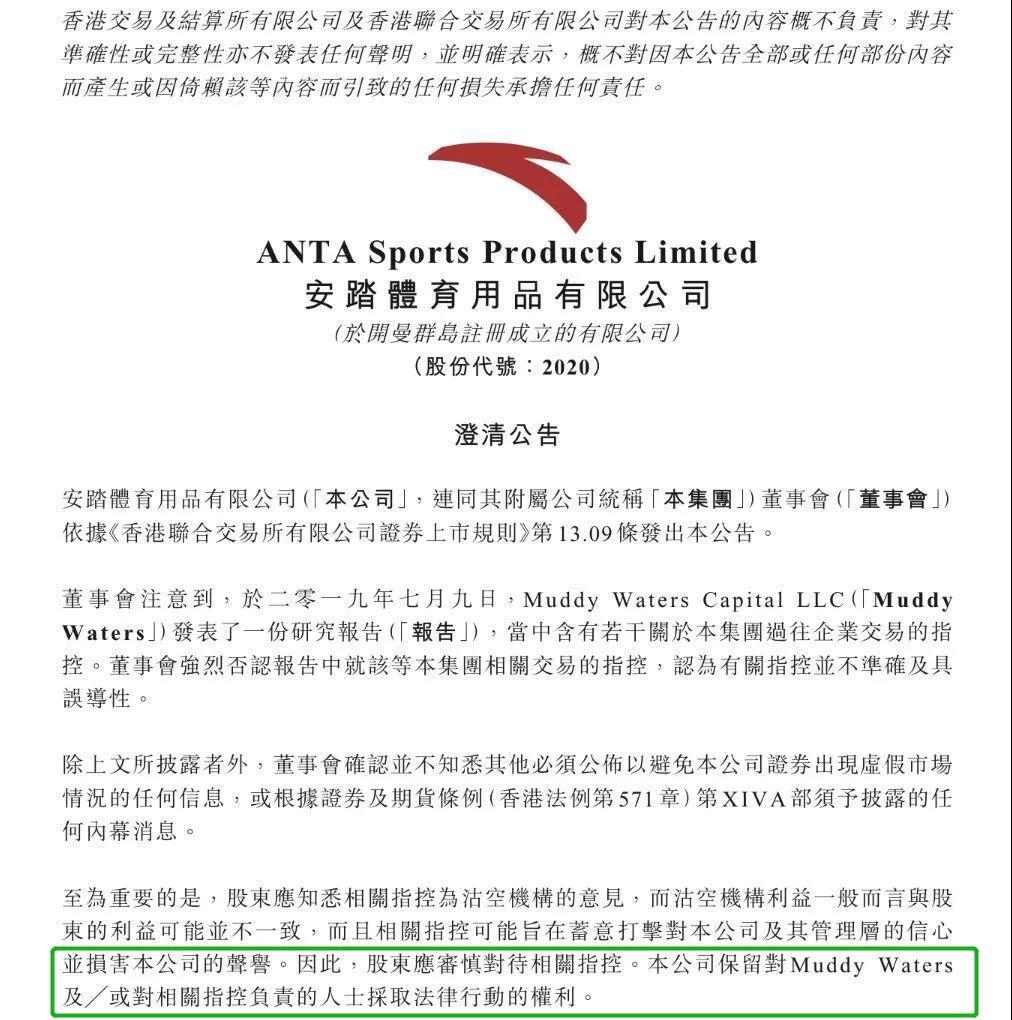 2019年7月7日,渾水公司在毫無征兆的情況下,突然發(fā)布做空安踏的報告。