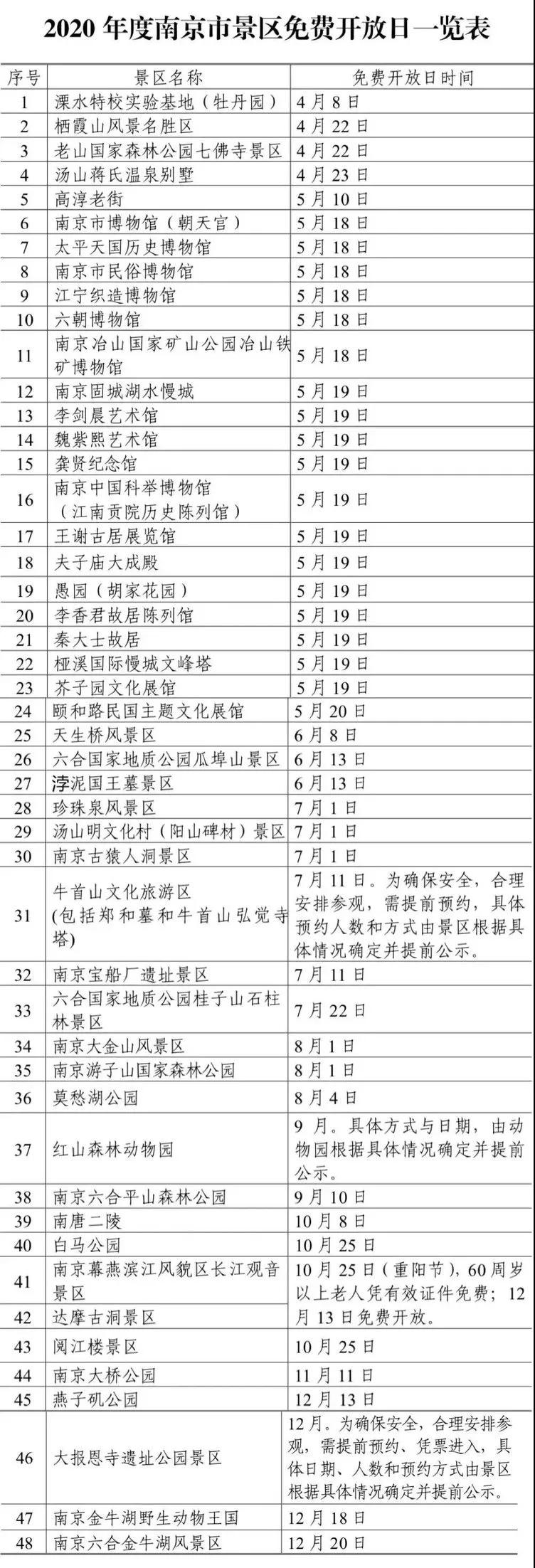 今年,南京共有48家旅游景點限時免費開放,包括棲霞山、朝天宮、六朝博物館、南京中國科舉博物館、胡家花園……實行免費景區(qū)名單如下: