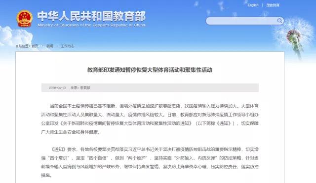當(dāng)前全國本土疫情傳播已基本阻斷,但境外疫情呈加速擴(kuò)散蔓延態(tài)勢,我國疫情輸入壓力持續(xù)加大。大型體育活動和聚集性活動人員集散量大、流動量大,疫情傳播風(fēng)險(xiǎn)較大。日前,教育部應(yīng)對新冠肺炎疫情工作領(lǐng)導(dǎo)小組辦公室印發(fā)《關(guān)于新冠肺炎疫情期間暫?;謴?fù)大型體育活動和聚集性活動的通知》(以下簡稱《通知》),切實(shí)保障廣大師生生命安全和身體健康。