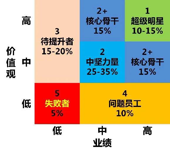 5類(lèi)人員:業(yè)績(jī)和價(jià)值觀都不達(dá)標(biāo)者——要明確淘汰與人員調(diào)整計(jì)劃。