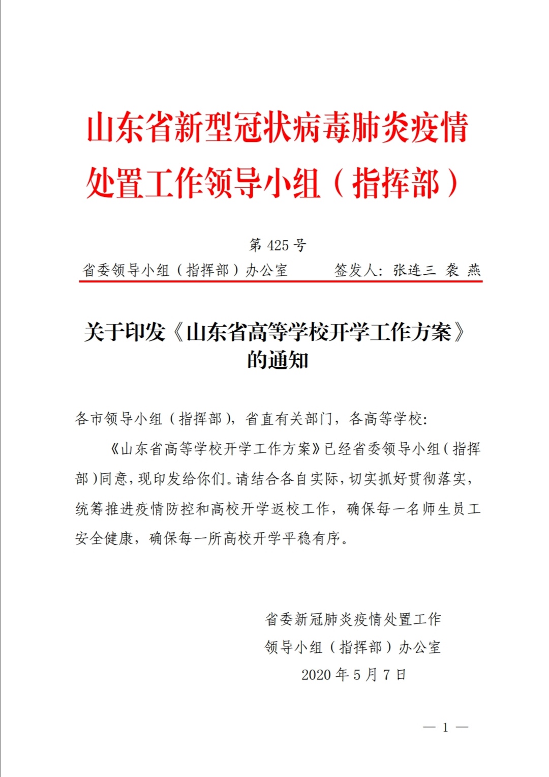 關(guān)于印發(fā)《山東省高等學(xué)校開(kāi)學(xué)工作方案》的通知