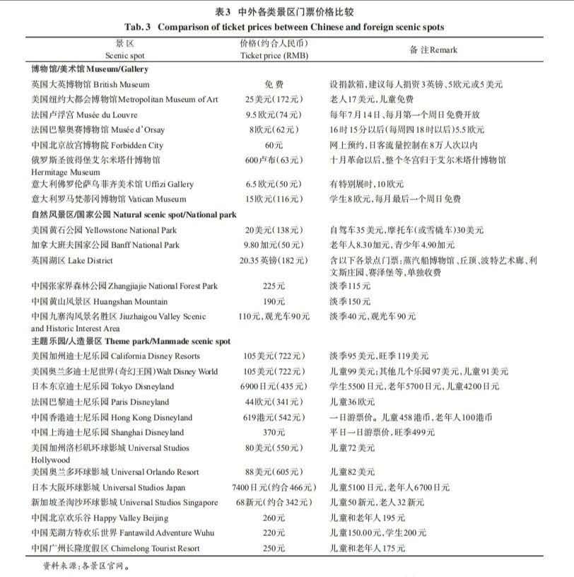 (1)景區(qū)門(mén)票價(jià)格總體而言并不算太高,與國(guó)際上同類景區(qū)相比,基本持平;