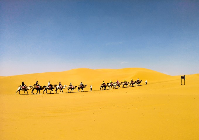 在景區(qū)內(nèi),你可以選擇乘坐景交車(chē)前往沙漠區(qū),也可以步行前往。在沙漠區(qū)之前還會(huì)路過(guò)3d玻璃橋、黃河索道、黃河蹦極的娛樂(lè)設(shè)施,充分滿足了每位旅客。到沙漠區(qū)后,最先進(jìn)入你視野的是一座陡峭的沙山,沙梯被掩埋在黃沙之中,如果你不想步行爬上去,也可以選擇不遠(yuǎn)處的電梯上山。沙山頂部是一個(gè)寬闊的平臺(tái),在這里可以一睹沙坡頭景區(qū)的全貌,尤其是如東方巨龍般的黃河,滔滔河水仿佛直通天際。平臺(tái)的盡頭是一個(gè)車(chē)站,每個(gè)前往沙漠地帶