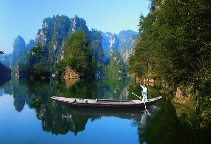 是一個截流筑壩而成的人工湖,精華景點有玉瓶開花、十女梳妝、金龜戲水、青娃鬧春等等,是武陵源景區(qū)惟一玩水的游覽景點,也是一個山水結合的旅游點。