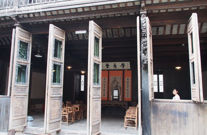 廳上廳:也名朱家廳。朱家是舊時(shí)江南一帶最有名的珠寶行肇慶堂銀樓的創(chuàng)始人。肇慶堂的名字就是朱家廳正堂的名字。整棟房子雕梁畫棟異常精致,其中最獨(dú)特的地方就是這座宅子有一上一下兩個(gè)客廳,所以才會(huì)被成為廳上廳。朱家廳中目前還有當(dāng)年肇慶堂銀樓制作的珠寶首飾展出。