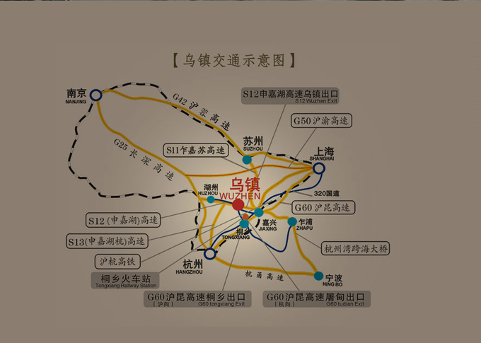 自駕:能到達(dá)烏鎮(zhèn)的高速公路有這幾條—S11乍嘉高速、S12申嘉湖高速、S13申嘉湖杭高速、G50滬渝高速、G60滬昆高速(滬向走桐鄉(xiāng)出口,杭向走屠甸出口)。東柵西柵都有收費(fèi)停車場。東柵停車場在烏鎮(zhèn)子夜路,面積相對(duì)比較小,夜間不許停車。西柵有四個(gè)停車場,分別在西柵的東門、南門和北門(北門是出口,東、南門為入口)和烏鎮(zhèn)中學(xué)員工宿舍西側(cè)。但員工宿舍西側(cè)的停車場只在黃金周期間對(duì)外開放。