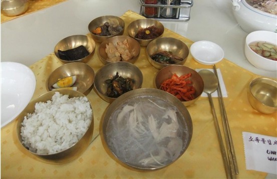 朝鮮的美食與韓國相似,有泡菜、人參雞湯、石鍋拌飯、朝鮮涼面等。朝鮮雖然物資匱乏,但是團餐也會有雞肉、豬肉、豆制品、炸魚、各種泡菜和啤酒、碳酸飲料等。在開城游覽時還會品嘗著名的“銅碗飯”,這在朝鮮絕對是高檔次的“大餐”了。此外,游客還可以自費品嘗當(dāng)?shù)靥厣朗?,如朝鮮冷面20元人民幣/碗,人參雞280元人民幣/份。