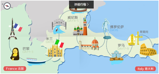 達人設計思路:此條線路的城市法國和意大利最經(jīng)典的城市,如果你首次前往法意,選擇這個玩法是最合適的。巴黎進,羅馬出,機票價格便宜,中途經(jīng)過時尚之都米蘭,水城威尼斯,文藝復興之都佛羅倫薩。