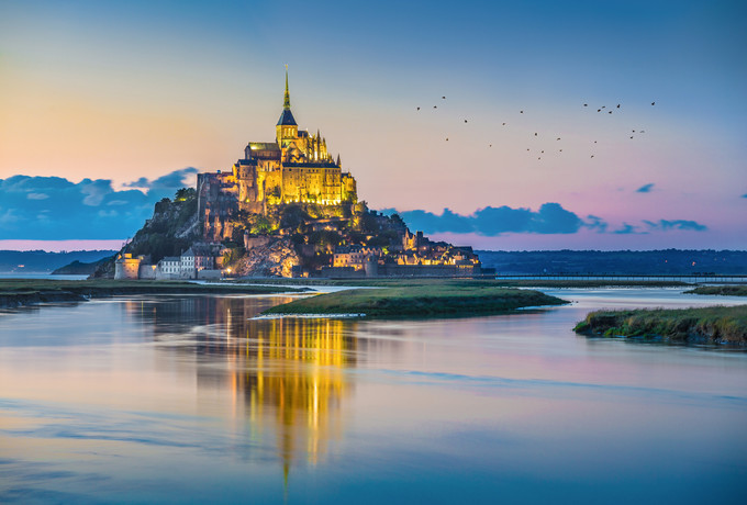 公元8世紀,紅衣主教奧貝在山體最高處修建了一座小教堂城堡奉獻給天使長米歇爾,使這里成為了成為朝圣中心。目前圣米歇爾山修道院被列入了“世界文化與自然遺產(chǎn)”名錄,是諾曼底必去的景點之一。 歲月的推移,以及大量朝圣者的來訪,使得修道院幾經(jīng)擴建翻修,最終成了今日的模樣。教堂擁有羅曼式、哥特式和火焰哥特式三種建筑風格,修道院頂上的金色大天使在陽光的照耀下分外奪目耀眼。
