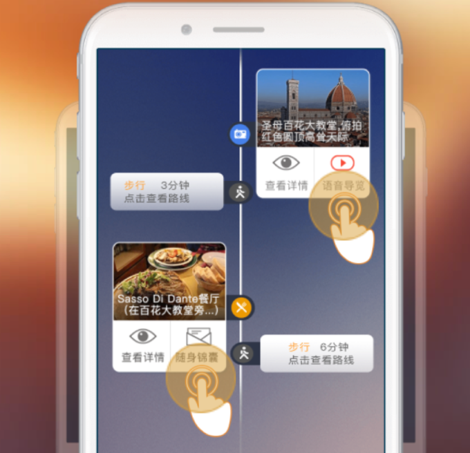 3、APP智能導航:再無需拿著厚重的A4紙出行,我們有智能APP導航幫你指引每天的行程路線,包括每天的游玩項目,景點之間的步行路線、乘車路線、時長全部提前規(guī)劃好,抵達目的地后只需輕輕一點跟著導航走,就能抵達自己的游玩目的地。