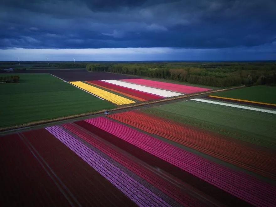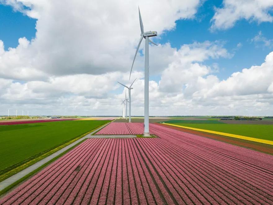 這里不僅風(fēng)景優(yōu)美,還擁有3500公頃荷蘭最大的球根花田。一望無(wú)際的郁金香花田和高高矗立的風(fēng)力發(fā)電機(jī)組成了一幅綿延100公里的美麗畫(huà)卷。
