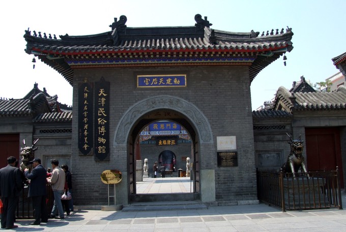 天后宮位于古文化街中心,也是古文化街古跡的核心,祭祀保佑出海遠(yuǎn)航平安的天后娘娘,已有600余年歷史?,F(xiàn)在是天津民俗博物館的所在地,館內(nèi)介紹了天津城歷史、民俗,陳列著明代天津城磚、清代漕運模型、清代水機等文物。