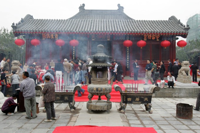 天津有一句老話:先有天后宮,后有天津衛(wèi)??梢娞旌髮m在天津人心目中的地位。這是中國三大天后宮之一,也是天津現(xiàn)存最古老的建筑。天后宮實際是老百姓供奉天后娘娘的廟宇,俗稱“娘娘宮”。昔日,天后宮供奉主神,當(dāng)然是天后娘娘。由于歷史原因,天后宮在漫長的歲月里,形成了佛道混雜、百神聚集的復(fù)雜情況。每年農(nóng)歷三月二十三日,都會在此舉行盛大的“皇會”,表演龍燈舞、獅子舞、少林會、高踐、法鼓、旱船、地秧歌、武術(shù)以及京戲、評劇、梆子等。