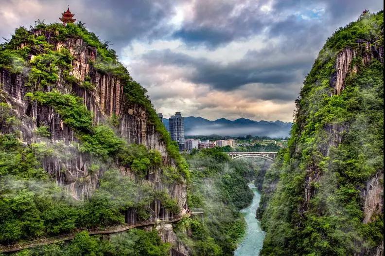餐后集合趕往【酉陽桃花源景區(qū)】,因自古武陵山地區(qū)“蠻不出洞、漢不入境”的皇命戒律,景區(qū)在武陵大山中沉睡了千年,被廣泛認(rèn)為是陶淵明筆下《桃花源記》原型地。呈現(xiàn)著“其中往來種作,男女衣著,悉如外人,黃發(fā)垂髫,并怡然自樂”絕美的“世外桃源”景觀。然后我們集合回返重慶。