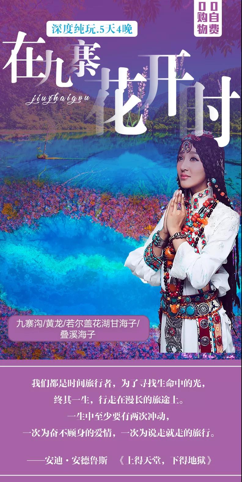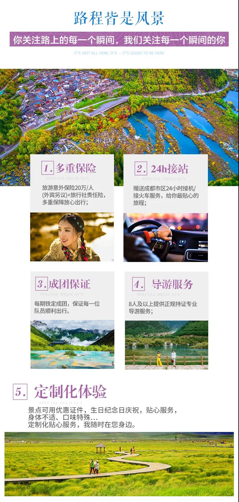 3、九寨溝面積較大游客需求不一,因此主要以游客自助游形式游覽,如無導(dǎo)游陪同望您諒解。游覽開始前導(dǎo)游會與您約定好集合時間,請務(wù)必按時到達指定地點,避免耽誤大家接下來的行程;