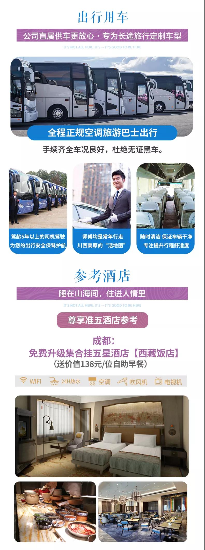 1、關(guān)于車輛交通:目前四川旅游市場8座以下車輛無法辦理旅游牌照,請游客知悉,以此理由提起的投訴我方拒不受理,望您諒解。