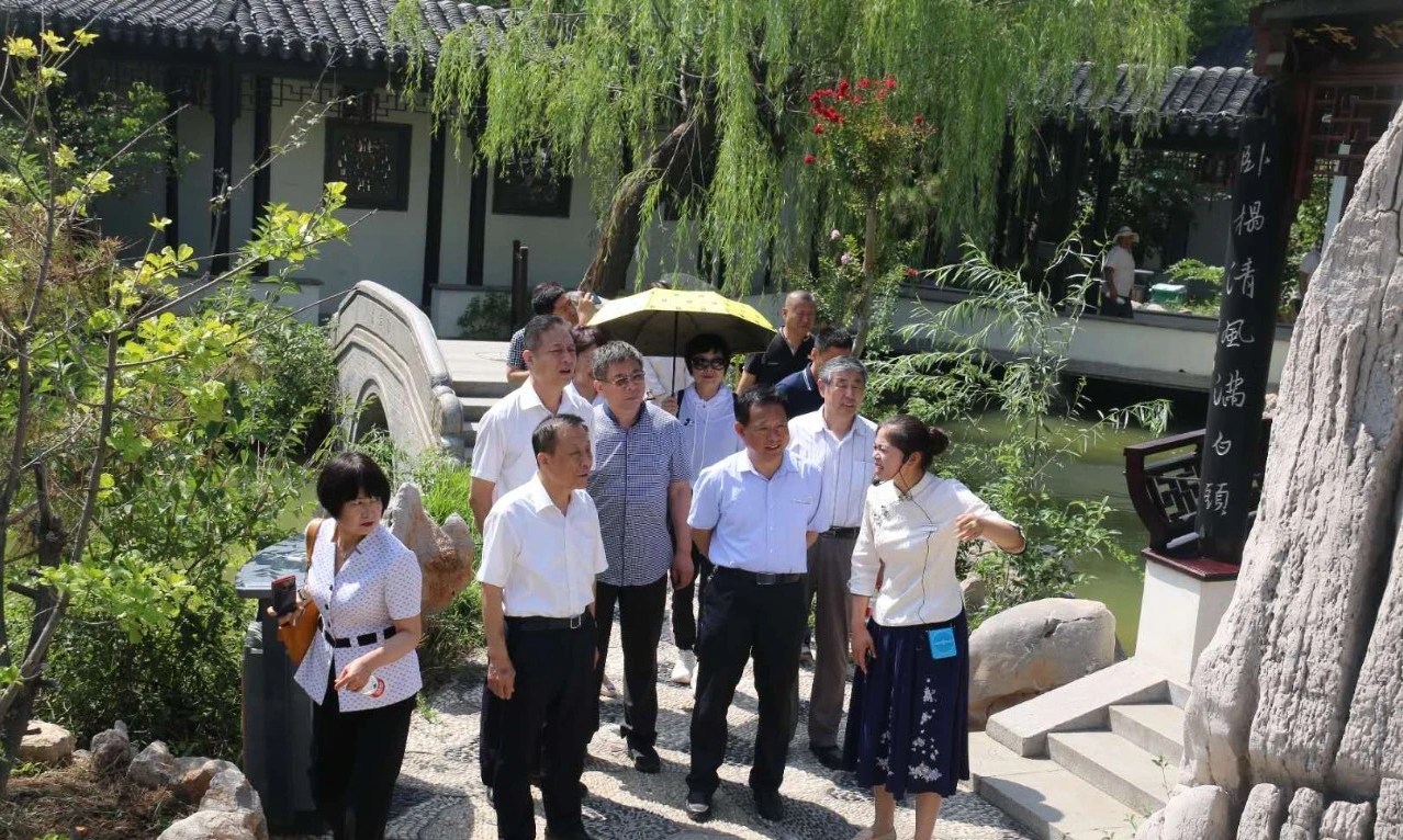 在檢查調(diào)研過程中,杜秘書長一行邊實地檢查調(diào)研,邊聽取介紹,并不時詢問了解相關(guān)情況,對宛園突出文化靈魂,精造旅游載體的做法給予高度評價,他們認(rèn)為:“宛園”是一家“江南古建,水鄉(xiāng)風(fēng)格”的蘇式園林。它匯集眾家名園精華,布局精巧,疏密得當(dāng)、移步易景、曲徑通幽;磚雕、木雕、泥雕、青磚灰瓦、奇石遍布,盡顯靈秀氣息;契合了“山水詩、山水畫、山水園”相融合的意境,完美地實現(xiàn)了“千景匯集小天地,千幅圖畫在園中”的藝術(shù)效果。中國運河名揚天下,宛園美景享譽四方。同時,他們高屋建瓴,指出了園林建設(shè)中,不被人們意識的瑕疵,提出了頗有見地的指導(dǎo)意見和極具針對性的建設(shè)性建議。這些意見和建議對“宛園”的進一步提高、完善和發(fā)展將起到積極的推動作用。
