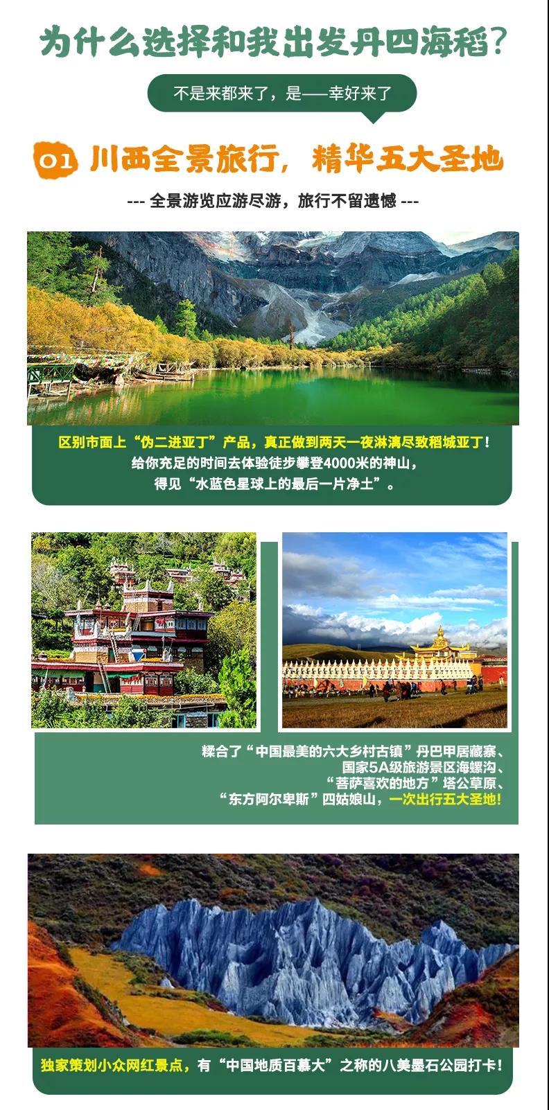 贈送:特色贈送甲居藏寨藏家晚餐、高原特色牦牛湯鍋、理塘茶馬古道自助石板燒烤;贈送旅游三寶、魔術(shù)頭巾、礦泉水緩解旅途疲勞;贈送價值98元圣地旅拍精致木質(zhì)相框&照片;贈送稻城專業(yè)攝影師現(xiàn)場教學(xué)夜拍星空直出大片,沒有星星時則教拍流光大片;15人以上贈送甲居藏寨篝火晚會;贈送成都市區(qū)24小時接機/接火車服務(wù);贈送項目不用不退。