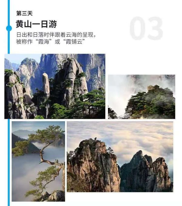 酒店接客人后出發(fā),車赴黃山風(fēng)景區(qū)換乘中心,換乘【景區(qū)交通車】至云谷寺(大約30分鐘),步行【或自愿自費(fèi)乘云谷纜車(單程80元/人次自理)】至白鵝嶺索道站,游覽【黃山風(fēng)景區(qū)】(備注:黃山登山游覽路線可逆行,根據(jù)當(dāng)日客情而定),游覽始信峰:觀連理、龍爪、探海、臥龍等十大名松;童子拜觀音、十八羅漢朝南海、猴子觀海等巧石群;經(jīng)慧明橋游北海景區(qū)觀夢(mèng)筆生花、散花塢、筆架峰等景點(diǎn);經(jīng)團(tuán)結(jié)松到西海排云亭觀景臺(tái)處觀賞:仙人曬靴、武松打虎等巧石。